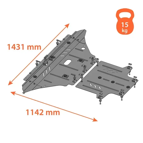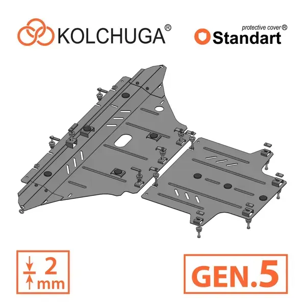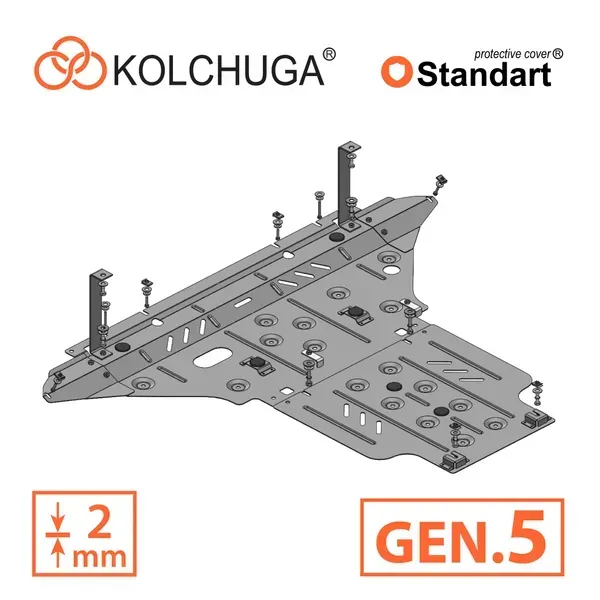 Kolchuga patrí medzi najspoľahlivejšie oceľové kryty podvozku na trhu. Vyrábané z vysokopevnostnej ocele, presne tvarované pre každý model auta a navrhnuté tak, aby chránili motor, prevodovku a ďalšie dôležité časti pri jazde v meste aj v teréne. Robustné, odolné a pripravené pre dlhé roky používania.