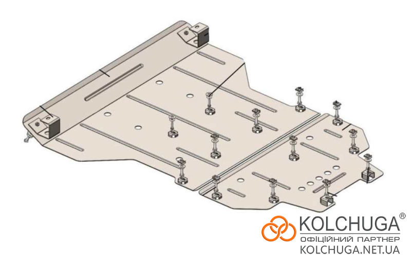 Kolchuga patrí medzi najspoľahlivejšie oceľové kryty podvozku na trhu. Vyrábané z vysokopevnostnej ocele, presne tvarované pre každý model auta a navrhnuté tak, aby chránili motor, prevodovku a ďalšie dôležité časti pri jazde v meste aj v teréne. Robustné, odolné a pripravené pre dlhé roky používania.