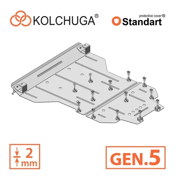 Kolchuga patrí medzi najspoľahlivejšie oceľové kryty podvozku na trhu. Vyrábané z vysokopevnostnej ocele, presne tvarované pre každý model auta a navrhnuté tak, aby chránili motor, prevodovku a ďalšie dôležité časti pri jazde v meste aj v teréne. Robustné, odolné a pripravené pre dlhé roky používania.