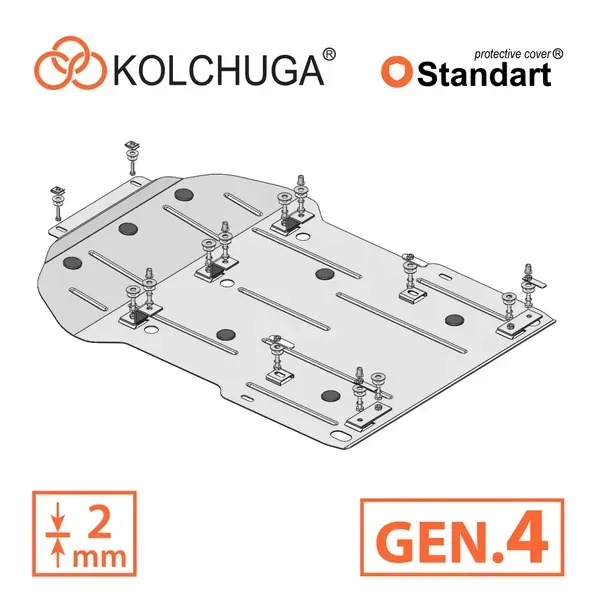 Kolchuga patrí medzi najspoľahlivejšie oceľové kryty podvozku na trhu. Vyrábané z vysokopevnostnej ocele, presne tvarované pre každý model auta a navrhnuté tak, aby chránili motor, prevodovku a ďalšie dôležité časti pri jazde v meste aj v teréne. Robustné, odolné a pripravené pre dlhé roky používania.