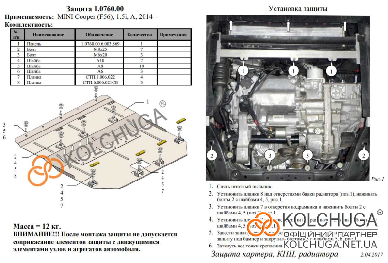 Ochrana motorového priestoru pre BMW 2 F45 rok 2014-2021 sa vyrába pomocou moderných technológií z materiálov najvyššej kvality. Ako základ používame za studena valcovanú oceľ s hrúbkou 2 mm. Pomocou lisovania dávame ochrane jedinečný tvar pre každý automobil tak, aby sa montovala na originálne montážne body bez potreby dodatočného vŕtania alebo zvárania. Vďaka tomu je proces inštalácie maximálne jednoduchý. Všetky potrebné montážne prvky sú súčasťou balenia.