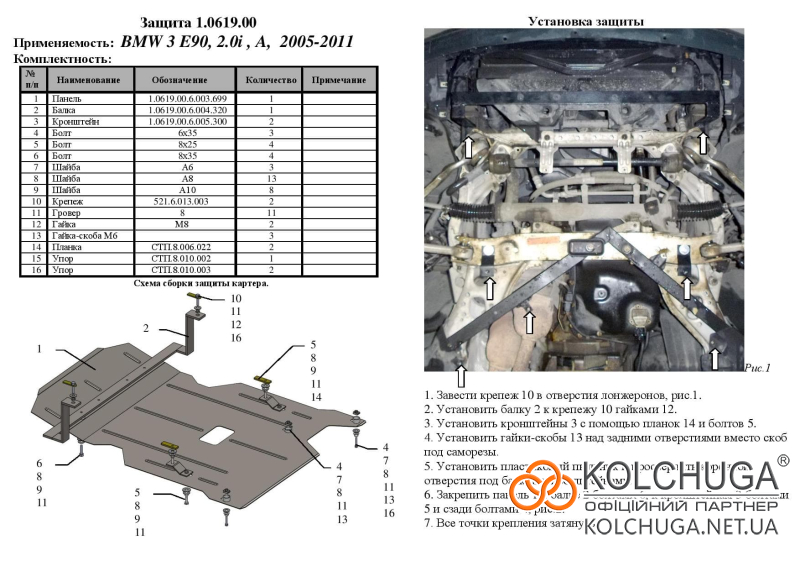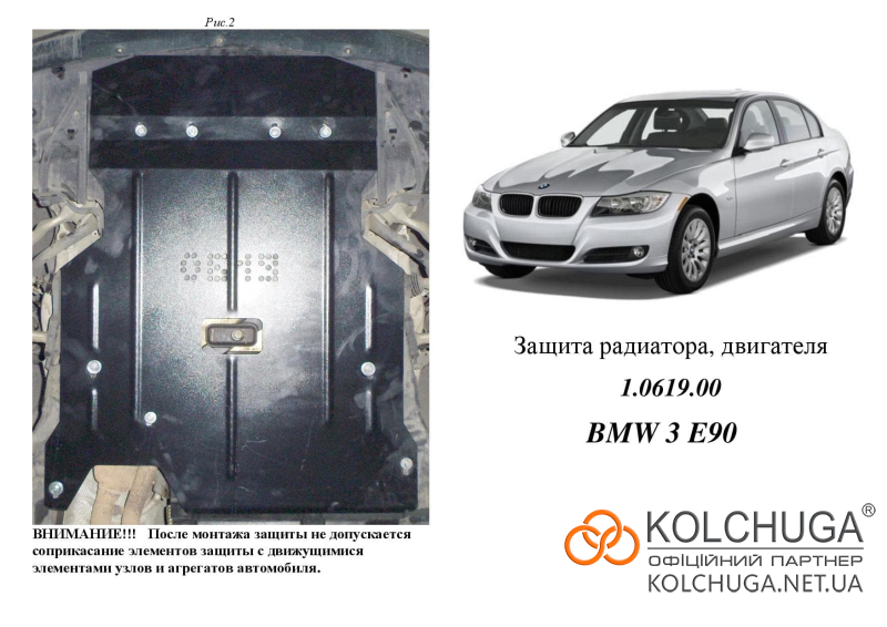 Ochrana motorového priestoru pre BMW 3 E90 rok 2005-2011 sa vyrába pomocou moderných technológií z materiálov najvyššej kvality. Ako základ používame za studena valcovanú oceľ s hrúbkou 2 mm. Pomocou lisovania dávame ochrane jedinečný tvar pre každý automobil tak, aby sa montovala na originálne montážne body bez potreby dodatočného vŕtania alebo zvárania. Vďaka tomu je proces inštalácie maximálne jednoduchý. Všetky potrebné montážne prvky sú súčasťou balenia.