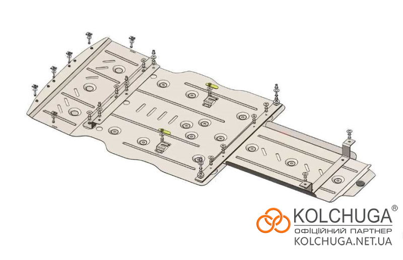 Kolchuga patrí medzi najspoľahlivejšie oceľové kryty podvozku na trhu. Vyrábané z vysokopevnostnej ocele, presne tvarované pre každý model auta a navrhnuté tak, aby chránili motor, prevodovku a ďalšie dôležité časti pri jazde v meste aj v teréne. Robustné, odolné a pripravené pre dlhé roky používania.