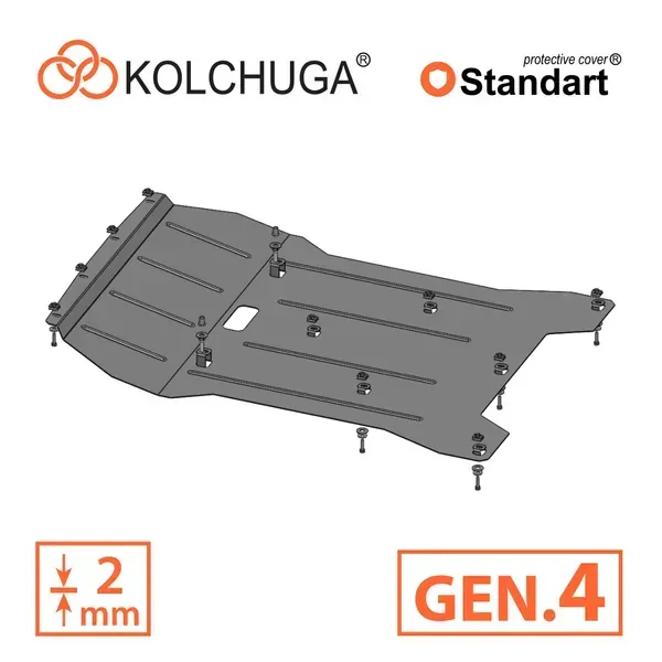 Kolchuga patrí medzi najspoľahlivejšie oceľové kryty podvozku na trhu. Vyrábané z vysokopevnostnej ocele, presne tvarované pre každý model auta a navrhnuté tak, aby chránili motor, prevodovku a ďalšie dôležité časti pri jazde v meste aj v teréne. Robustné, odolné a pripravené pre dlhé roky používania.