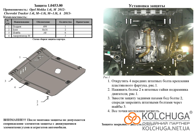 Ochrana motorového priestoru pre Buick Encore rok 2012-2016 sa vyrába pomocou moderných technológií z materiálov najvyššej kvality. Ako základ používame za studena valcovanú oceľ s hrúbkou 2 mm. Pomocou lisovania dávame ochrane jedinečný tvar pre každý automobil tak, aby sa montovala na originálne montážne body bez potreby dodatočného vŕtania alebo zvárania. Vďaka tomu je proces inštalácie maximálne jednoduchý. Všetky potrebné montážne prvky sú súčasťou balenia.