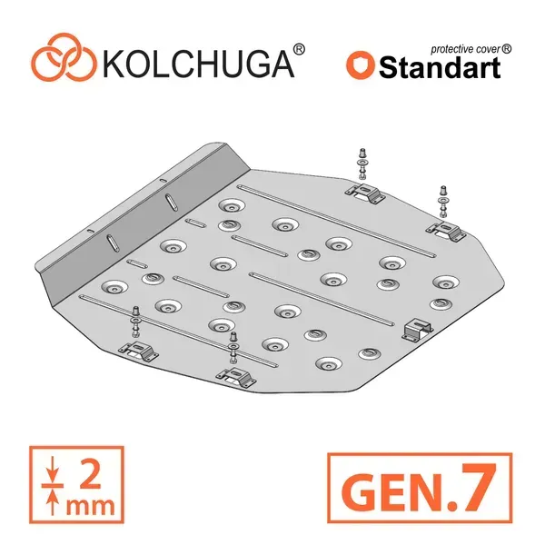 Kolchuga patrí medzi najspoľahlivejšie oceľové kryty podvozku na trhu. Vyrábané z vysokopevnostnej ocele, presne tvarované pre každý model auta a navrhnuté tak, aby chránili motor, prevodovku a ďalšie dôležité časti pri jazde v meste aj v teréne. Robustné, odolné a pripravené pre dlhé roky používania.