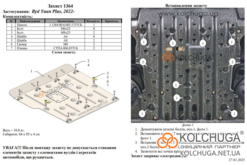 Ochrana motorového priestoru pre BYD Yuan Plus (Atto 3) rok od 2021 sa vyrába pomocou moderných technológií z materiálov najvyššej kvality. Ako základ používame za studena valcovanú oceľ s hrúbkou 2 mm. Pomocou lisovania dávame ochrane jedinečný tvar pre každý automobil tak, aby sa montovala na originálne montážne body bez potreby dodatočného vŕtania alebo zvárania. Vďaka tomu je proces inštalácie maximálne jednoduchý. Všetky potrebné montážne prvky sú súčasťou balenia.