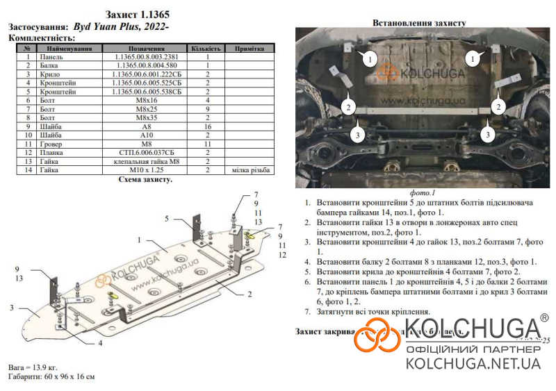 Ochrana motora BYD Yuan Plus (Atto 3) rok od 2021 nielenže chráni olejovú vaňu pred fyzickým nárazom, ale zároveň celý motorový priestor pred vniknutím vody, prachu a nečistôt. To výrazne predlžuje životnosť remeňov, kladiek a ďalších pohyblivých častí v motorovom priestore. Ochrany sa inštalujú namiesto plastových a ich plynulé tvary kopírujú tvar podvozku vozidla, čím zlepšujú aerodynamiku.