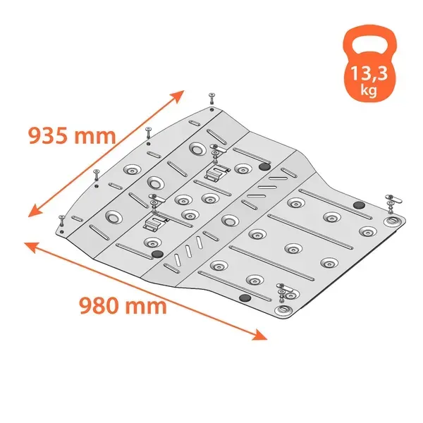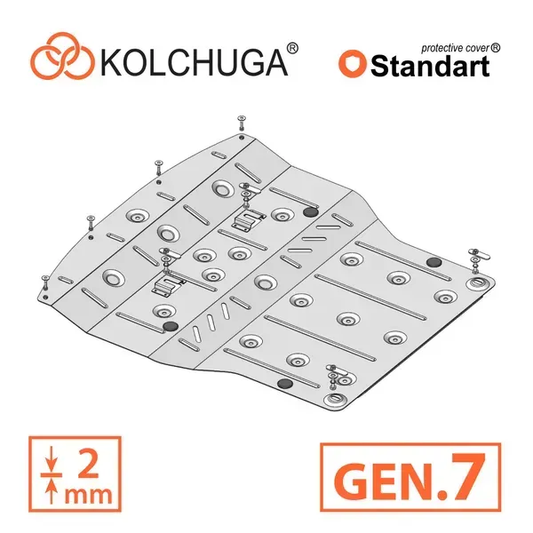 Kolchuga patrí medzi najspoľahlivejšie oceľové kryty podvozku na trhu. Vyrábané z vysokopevnostnej ocele, presne tvarované pre každý model auta a navrhnuté tak, aby chránili motor, prevodovku a ďalšie dôležité časti pri jazde v meste aj v teréne. Robustné, odolné a pripravené pre dlhé roky používania.