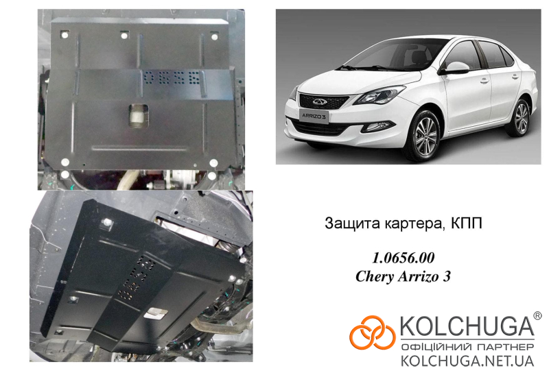 Ochrana motora Chery Arrizo 3 rok od 2014 nielenže chráni olejovú vaňu pred fyzickým nárazom, ale zároveň celý motorový priestor pred vniknutím vody, prachu a nečistôt. To výrazne predlžuje životnosť remeňov, kladiek a ďalších pohyblivých častí v motorovom priestore. Ochrany sa inštalujú namiesto plastových a ich plynulé tvary kopírujú tvar podvozku vozidla, čím zlepšujú aerodynamiku.