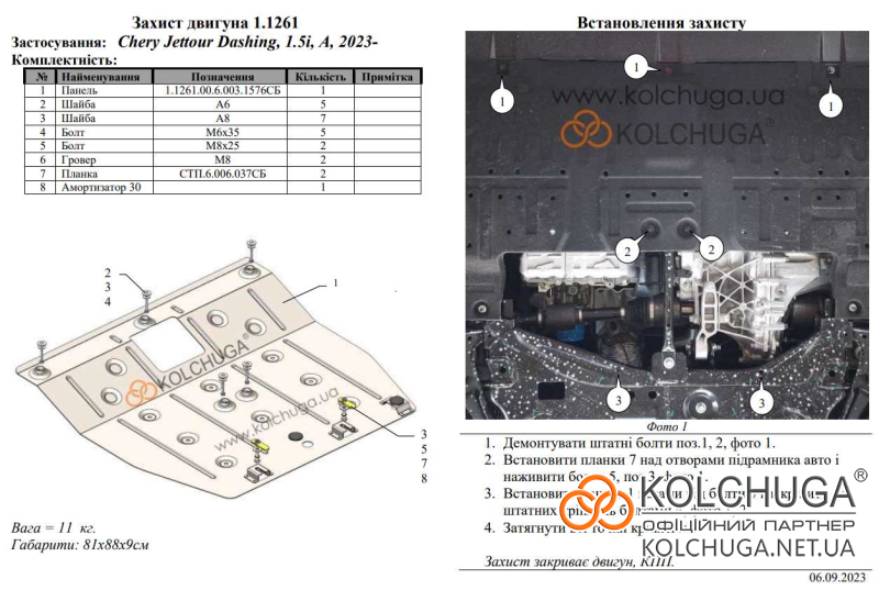 Ochrana motorového priestoru pre Chery Jetour Dashing rok od 2023 sa vyrába pomocou moderných technológií z materiálov najvyššej kvality. Ako základ používame za studena valcovanú oceľ s hrúbkou 2 mm. Pomocou lisovania dávame ochrane jedinečný tvar pre každý automobil tak, aby sa montovala na originálne montážne body bez potreby dodatočného vŕtania alebo zvárania. Vďaka tomu je proces inštalácie maximálne jednoduchý. Všetky potrebné montážne prvky sú súčasťou balenia.