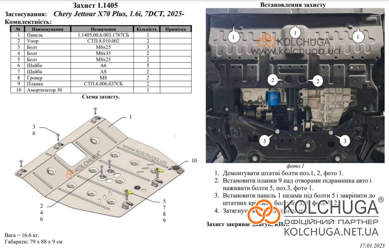 Ochrana motorového priestoru pre Chery Jetour X70 Plus facelift rok od 2025 sa vyrába pomocou moderných technológií z materiálov najvyššej kvality. Ako základ používame za studena valcovanú oceľ s hrúbkou 2 mm. Pomocou lisovania dávame ochrane jedinečný tvar pre každý automobil tak, aby sa montovala na originálne montážne body bez potreby dodatočného vŕtania alebo zvárania. Vďaka tomu je proces inštalácie maximálne jednoduchý. Všetky potrebné montážne prvky sú súčasťou balenia.