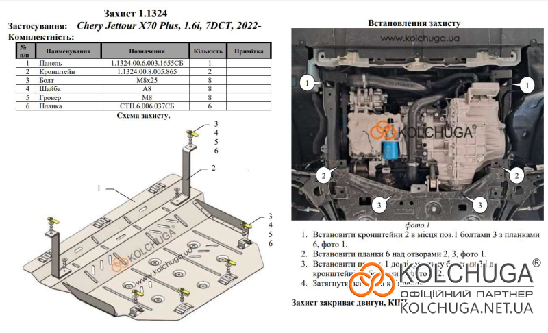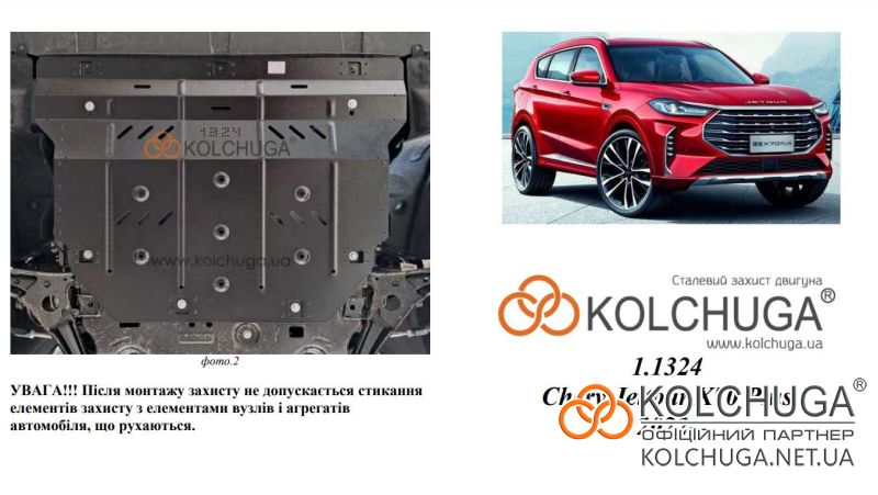 Ochrana motorového priestoru pre Chery Jetour X70 Plus rok od 2022 sa vyrába pomocou moderných technológií z materiálov najvyššej kvality. Ako základ používame za studena valcovanú oceľ s hrúbkou 2 mm. Pomocou lisovania dávame ochrane jedinečný tvar pre každý automobil tak, aby sa montovala na originálne montážne body bez potreby dodatočného vŕtania alebo zvárania. Vďaka tomu je proces inštalácie maximálne jednoduchý. Všetky potrebné montážne prvky sú súčasťou balenia.