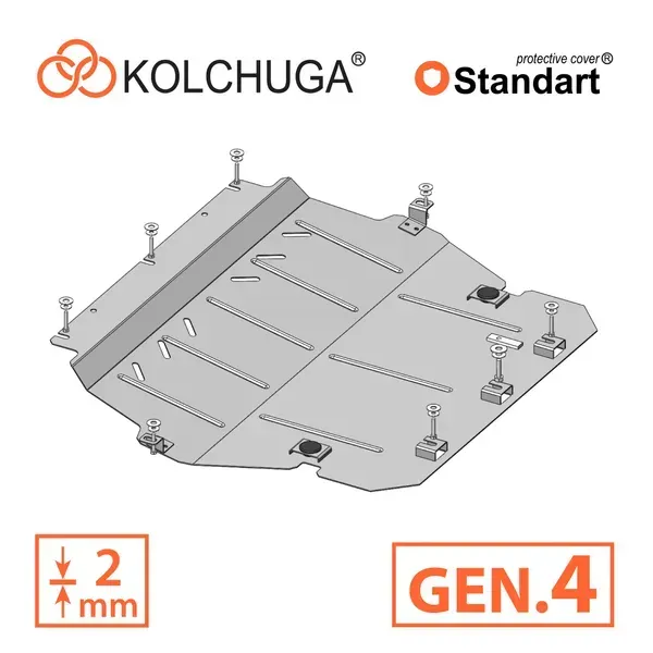 Kolchuga patrí medzi najspoľahlivejšie oceľové kryty podvozku na trhu. Vyrábané z vysokopevnostnej ocele, presne tvarované pre každý model auta a navrhnuté tak, aby chránili motor, prevodovku a ďalšie dôležité časti pri jazde v meste aj v teréne. Robustné, odolné a pripravené pre dlhé roky používania.