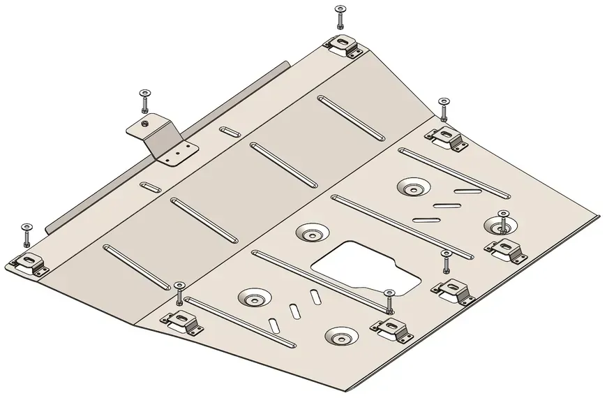 Ochrana motorového priestoru pre Dacia Logan 3 rok od 2020 sa vyrába pomocou moderných technológií z materiálov najvyššej kvality. Ako základ používame za studena valcovanú oceľ s hrúbkou 2 mm. Pomocou lisovania dávame ochrane jedinečný tvar pre každý automobil tak, aby sa montovala na originálne montážne body bez potreby dodatočného vŕtania alebo zvárania. Vďaka tomu je proces inštalácie maximálne jednoduchý. Všetky potrebné montážne prvky sú súčasťou balenia.
