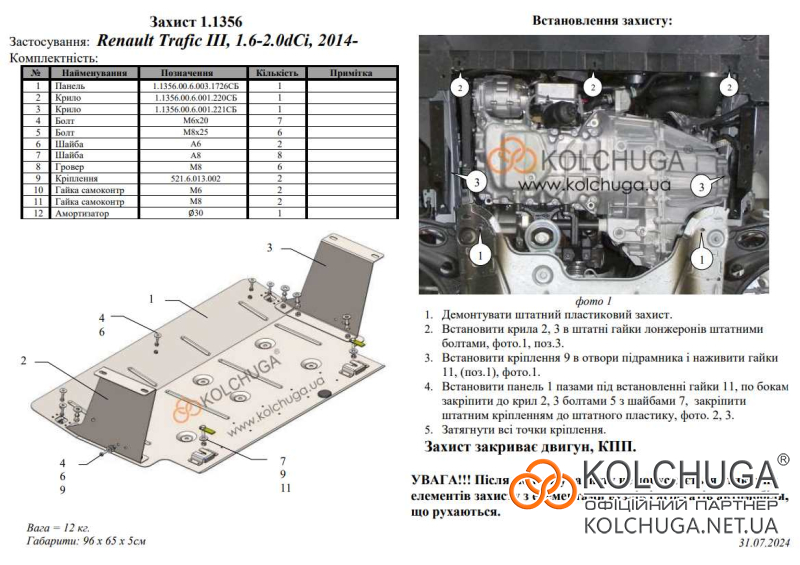 Ochrana motorového priestoru pre Fiat Talento 2 rok 2016-2020 sa vyrába pomocou moderných technológií z materiálov najvyššej kvality. Ako základ používame za studena valcovanú oceľ s hrúbkou 2 mm. Pomocou lisovania dávame ochrane jedinečný tvar pre každý automobil tak, aby sa montovala na originálne montážne body bez potreby dodatočného vŕtania alebo zvárania. Vďaka tomu je proces inštalácie maximálne jednoduchý. Všetky potrebné montážne prvky sú súčasťou balenia.