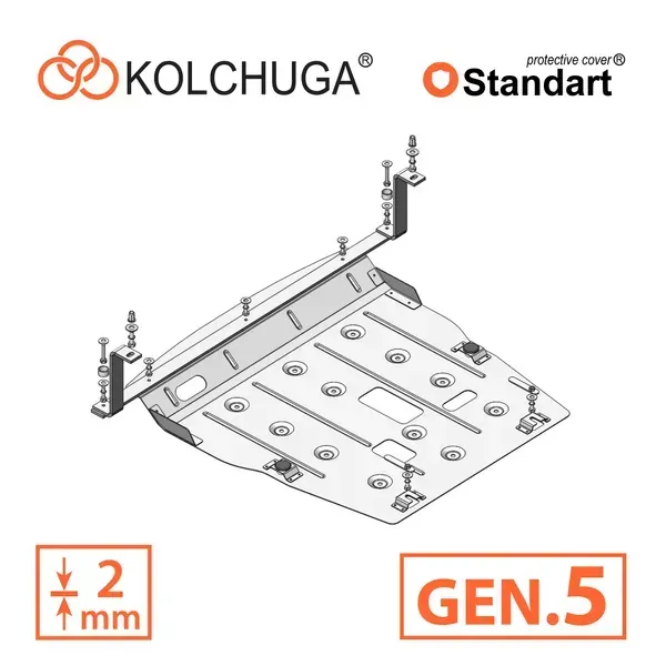 Kolchuga patrí medzi najspoľahlivejšie oceľové kryty podvozku na trhu. Vyrábané z vysokopevnostnej ocele, presne tvarované pre každý model auta a navrhnuté tak, aby chránili motor, prevodovku a ďalšie dôležité časti pri jazde v meste aj v teréne. Robustné, odolné a pripravené pre dlhé roky používania.