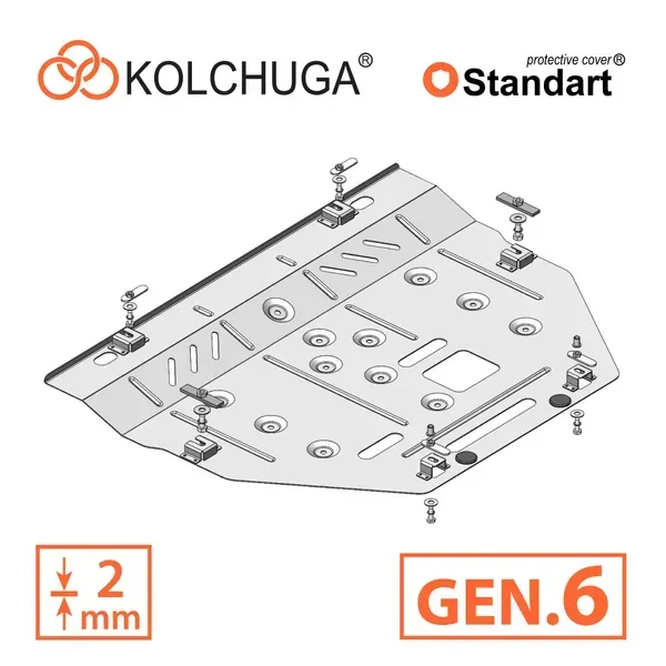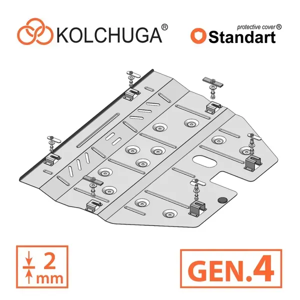 Kolchuga patrí medzi najspoľahlivejšie oceľové kryty podvozku na trhu. Vyrábané z vysokopevnostnej ocele, presne tvarované pre každý model auta a navrhnuté tak, aby chránili motor, prevodovku a ďalšie dôležité časti pri jazde v meste aj v teréne. Robustné, odolné a pripravené pre dlhé roky používania.