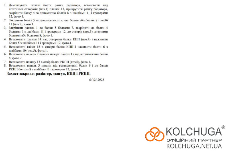 Kolchuga patrí medzi najspoľahlivejšie oceľové kryty podvozku na trhu. Vyrábané z vysokopevnostnej ocele, presne tvarované pre každý model auta a navrhnuté tak, aby chránili motor, prevodovku a ďalšie dôležité časti pri jazde v meste aj v teréne. Robustné, odolné a pripravené pre dlhé roky používania.