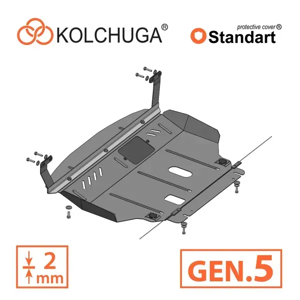 Kolchuga patrí medzi najspoľahlivejšie oceľové kryty podvozku na trhu. Vyrábané z vysokopevnostnej ocele, presne tvarované pre každý model auta a navrhnuté tak, aby chránili motor, prevodovku a ďalšie dôležité časti pri jazde v meste aj v teréne. Robustné, odolné a pripravené pre dlhé roky používania.