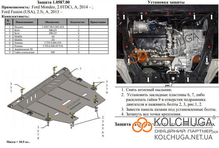 Ochrana motorového priestoru pre Ford Galaxy 3 rok od 2015 sa vyrába pomocou moderných technológií z materiálov najvyššej kvality. Ako základ používame za studena valcovanú oceľ s hrúbkou 2 mm. Pomocou lisovania dávame ochrane jedinečný tvar pre každý automobil tak, aby sa montovala na originálne montážne body bez potreby dodatočného vŕtania alebo zvárania. Vďaka tomu je proces inštalácie maximálne jednoduchý. Všetky potrebné montážne prvky sú súčasťou balenia.