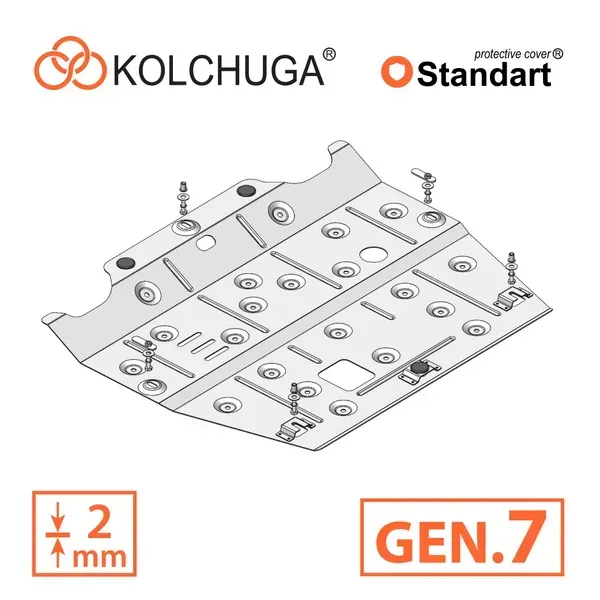 Kolchuga patrí medzi najspoľahlivejšie oceľové kryty podvozku na trhu. Vyrábané z vysokopevnostnej ocele, presne tvarované pre každý model auta a navrhnuté tak, aby chránili motor, prevodovku a ďalšie dôležité časti pri jazde v meste aj v teréne. Robustné, odolné a pripravené pre dlhé roky používania.