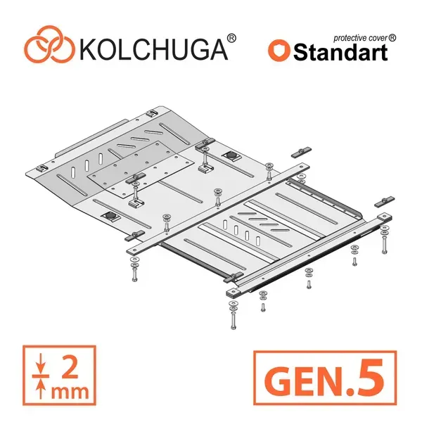 Kolchuga patrí medzi najspoľahlivejšie oceľové kryty podvozku na trhu. Vyrábané z vysokopevnostnej ocele, presne tvarované pre každý model auta a navrhnuté tak, aby chránili motor, prevodovku a ďalšie dôležité časti pri jazde v meste aj v teréne. Robustné, odolné a pripravené pre dlhé roky používania.