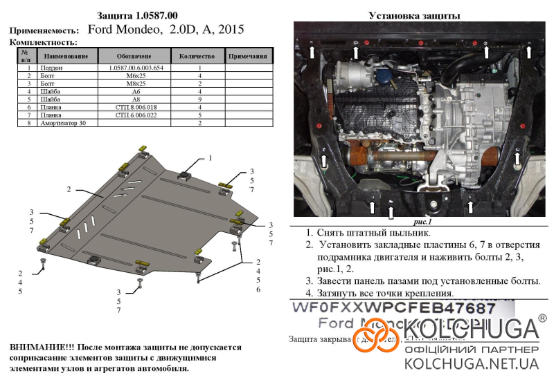 Ochrana motorového priestoru pre Ford S-Max 2 rok od 2015 sa vyrába pomocou moderných technológií z materiálov najvyššej kvality. Ako základ používame za studena valcovanú oceľ s hrúbkou 2 mm. Pomocou lisovania dávame ochrane jedinečný tvar pre každý automobil tak, aby sa montovala na originálne montážne body bez potreby dodatočného vŕtania alebo zvárania. Vďaka tomu je proces inštalácie maximálne jednoduchý. Všetky potrebné montážne prvky sú súčasťou balenia.