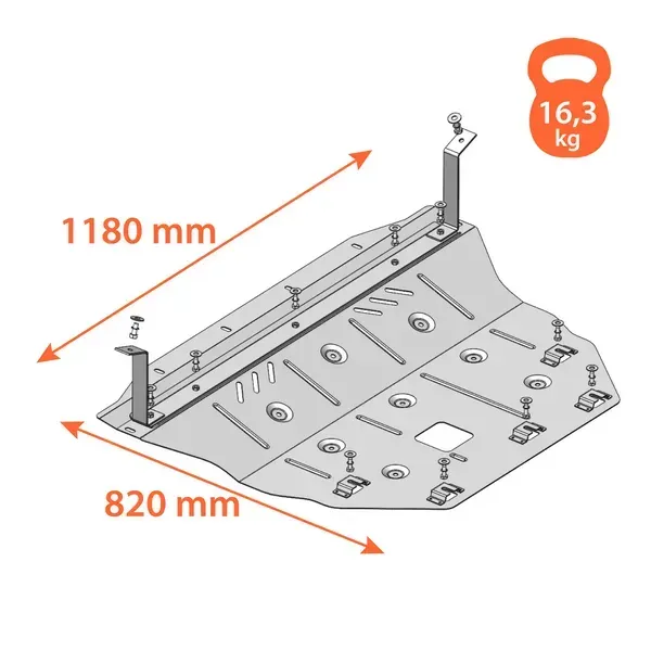 Kolchuga patrí medzi najspoľahlivejšie oceľové kryty podvozku na trhu. Vyrábané z vysokopevnostnej ocele, presne tvarované pre každý model auta a navrhnuté tak, aby chránili motor, prevodovku a ďalšie dôležité časti pri jazde v meste aj v teréne. Robustné, odolné a pripravené pre dlhé roky používania.