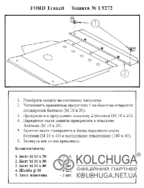 Ochrana motorového priestoru pre Ford Transit 4 rok 1992-2000 sa vyrába pomocou moderných technológií z materiálov najvyššej kvality. Ako základ používame za studena valcovanú oceľ s hrúbkou 2 mm. Pomocou lisovania dávame ochrane jedinečný tvar pre každý automobil tak, aby sa montovala na originálne montážne body bez potreby dodatočného vŕtania alebo zvárania. Vďaka tomu je proces inštalácie maximálne jednoduchý. Všetky potrebné montážne prvky sú súčasťou balenia.