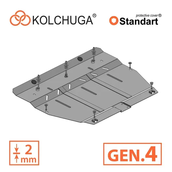 Kolchuga patrí medzi najspoľahlivejšie oceľové kryty podvozku na trhu. Vyrábané z vysokopevnostnej ocele, presne tvarované pre každý model auta a navrhnuté tak, aby chránili motor, prevodovku a ďalšie dôležité časti pri jazde v meste aj v teréne. Robustné, odolné a pripravené pre dlhé roky používania.
