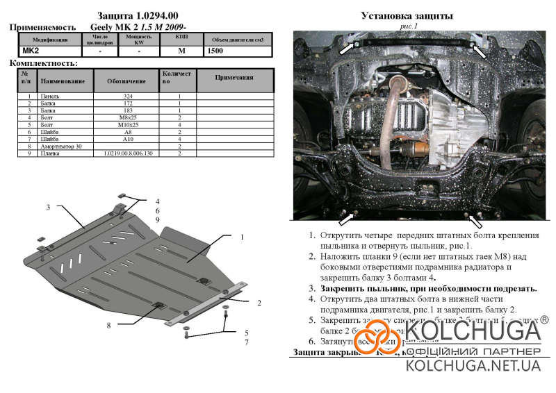 Ochrana motorového priestoru pre Geely MK Cross rok od 2006 sa vyrába pomocou moderných technológií z materiálov najvyššej kvality. Ako základ používame za studena valcovanú oceľ s hrúbkou 2 mm. Pomocou lisovania dávame ochrane jedinečný tvar pre každý automobil tak, aby sa montovala na originálne montážne body bez potreby dodatočného vŕtania alebo zvárania. Vďaka tomu je proces inštalácie maximálne jednoduchý. Všetky potrebné montážne prvky sú súčasťou balenia.
