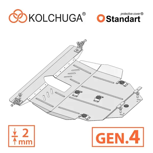 Kolchuga patrí medzi najspoľahlivejšie oceľové kryty podvozku na trhu. Vyrábané z vysokopevnostnej ocele, presne tvarované pre každý model auta a navrhnuté tak, aby chránili motor, prevodovku a ďalšie dôležité časti pri jazde v meste aj v teréne. Robustné, odolné a pripravené pre dlhé roky používania.