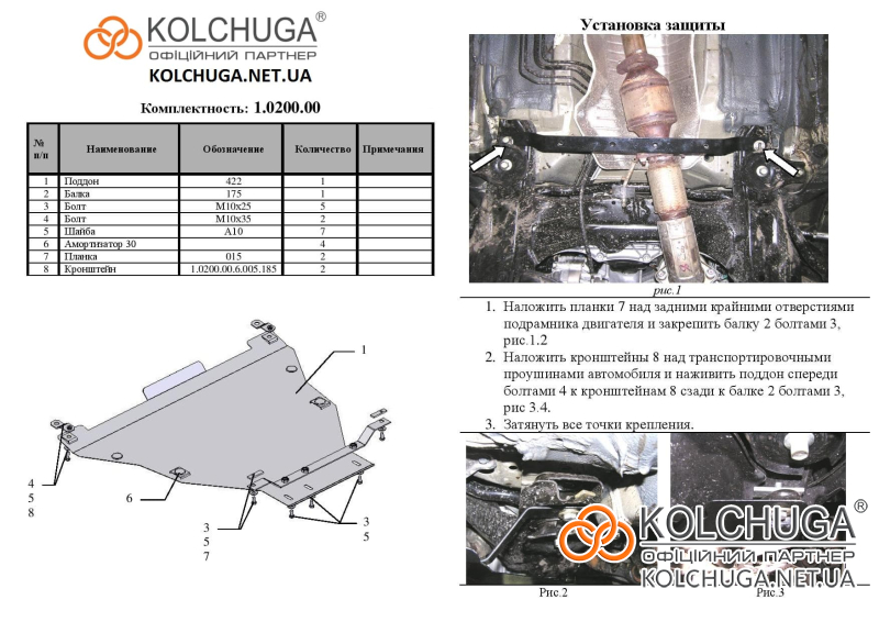 Kolchuga patrí medzi najspoľahlivejšie oceľové kryty podvozku na trhu. Vyrábané z vysokopevnostnej ocele, presne tvarované pre každý model auta a navrhnuté tak, aby chránili motor, prevodovku a ďalšie dôležité časti pri jazde v meste aj v teréne. Robustné, odolné a pripravené pre dlhé roky používania.