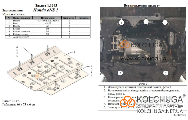 Ochrana motorového priestoru pre Honda eNS1 rok od 2022 sa vyrába pomocou moderných technológií z materiálov najvyššej kvality. Ako základ používame za studena valcovanú oceľ s hrúbkou 2 mm. Pomocou lisovania dávame ochrane jedinečný tvar pre každý automobil tak, aby sa montovala na originálne montážne body bez potreby dodatočného vŕtania alebo zvárania. Vďaka tomu je proces inštalácie maximálne jednoduchý. Všetky potrebné montážne prvky sú súčasťou balenia.