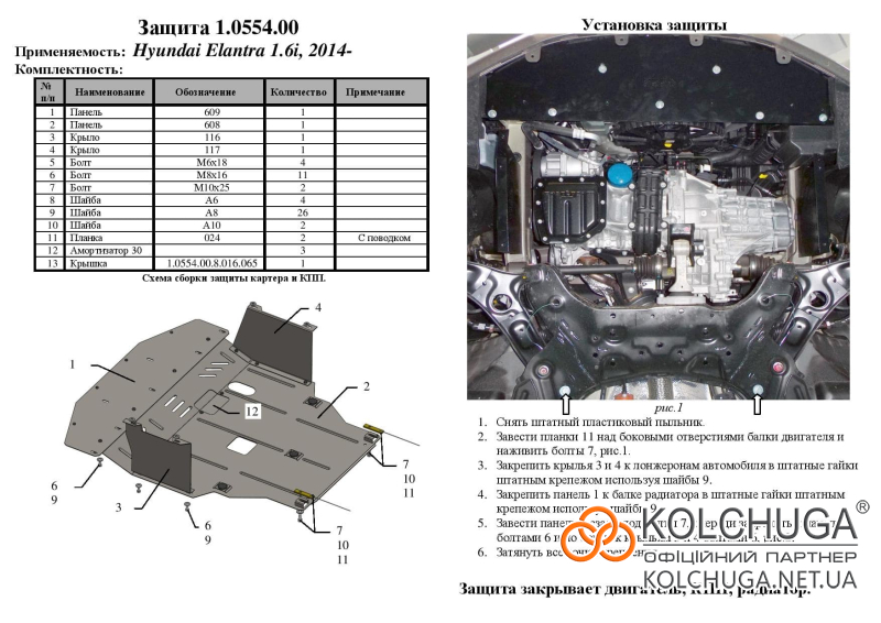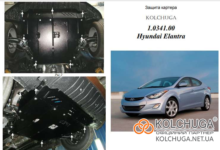 Ochrana motorového priestoru pre Hyundai Avante 5 rok 2010-2016 sa vyrába pomocou moderných technológií z materiálov najvyššej kvality. Ako základ používame za studena valcovanú oceľ s hrúbkou 2 mm. Pomocou lisovania dávame ochrane jedinečný tvar pre každý automobil tak, aby sa montovala na originálne montážne body bez potreby dodatočného vŕtania alebo zvárania. Vďaka tomu je proces inštalácie maximálne jednoduchý. Všetky potrebné montážne prvky sú súčasťou balenia.