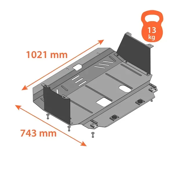 Kolchuga patrí medzi najspoľahlivejšie oceľové kryty podvozku na trhu. Vyrábané z vysokopevnostnej ocele, presne tvarované pre každý model auta a navrhnuté tak, aby chránili motor, prevodovku a ďalšie dôležité časti pri jazde v meste aj v teréne. Robustné, odolné a pripravené pre dlhé roky používania.