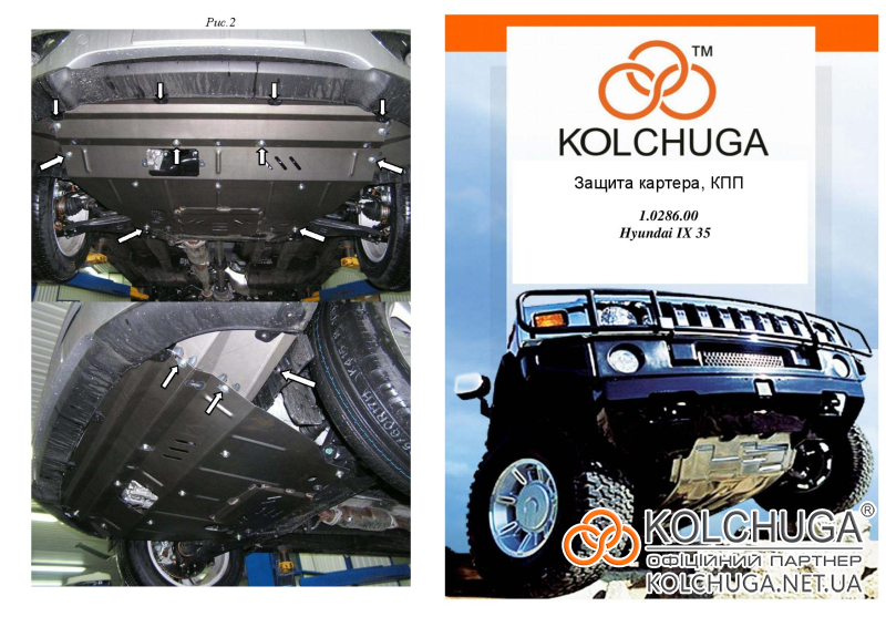 Ochrana motora Hyundai ix35 rok od 2010 nielenže chráni olejovú vaňu pred fyzickým nárazom, ale zároveň celý motorový priestor pred vniknutím vody, prachu a nečistôt. To výrazne predlžuje životnosť remeňov, kladiek a ďalších pohyblivých častí v motorovom priestore. Ochrany sa inštalujú namiesto plastových a ich plynulé tvary kopírujú tvar podvozku vozidla, čím zlepšujú aerodynamiku.