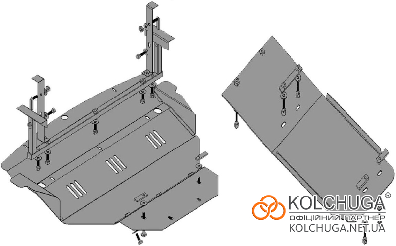 Kolchuga patrí medzi najspoľahlivejšie oceľové kryty podvozku na trhu. Vyrábané z vysokopevnostnej ocele, presne tvarované pre každý model auta a navrhnuté tak, aby chránili motor, prevodovku a ďalšie dôležité časti pri jazde v meste aj v teréne. Robustné, odolné a pripravené pre dlhé roky používania.