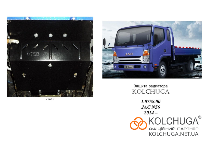 Ochrana motorového priestoru pre Jac N56 rok od 2014 sa vyrába pomocou moderných technológií z materiálov najvyššej kvality. Ako základ používame za studena valcovanú oceľ s hrúbkou 2 mm. Pomocou lisovania dávame ochrane jedinečný tvar pre každý automobil tak, aby sa montovala na originálne montážne body bez potreby dodatočného vŕtania alebo zvárania. Vďaka tomu je proces inštalácie maximálne jednoduchý. Všetky potrebné montážne prvky sú súčasťou balenia.
