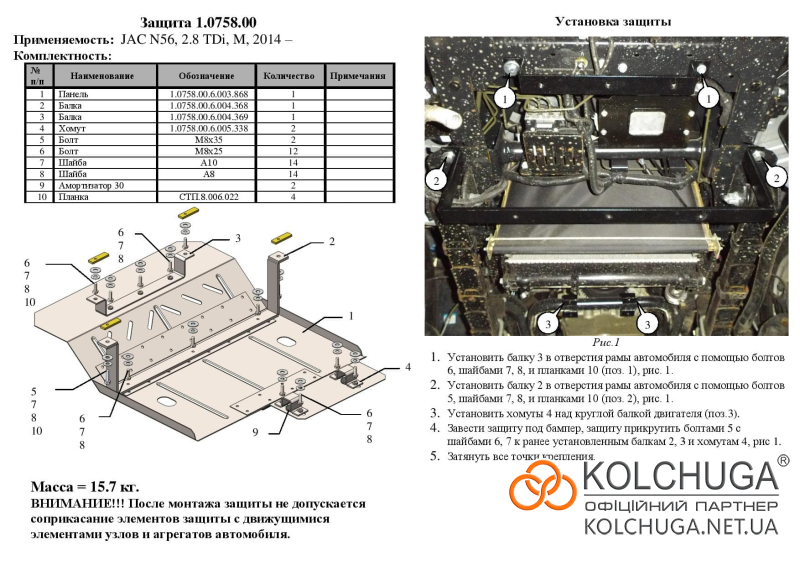 Kolchuga patrí medzi najspoľahlivejšie oceľové kryty podvozku na trhu. Vyrábané z vysokopevnostnej ocele, presne tvarované pre každý model auta a navrhnuté tak, aby chránili motor, prevodovku a ďalšie dôležité časti pri jazde v meste aj v teréne. Robustné, odolné a pripravené pre dlhé roky používania.