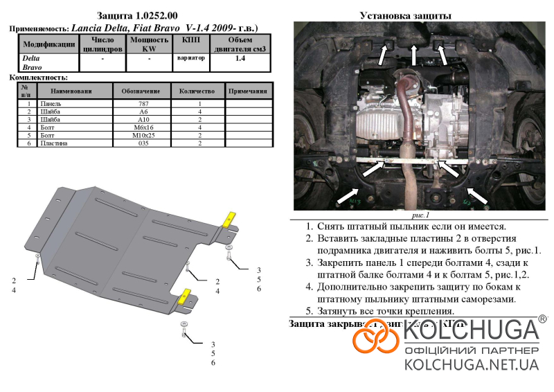Ochrana motorového priestoru pre Lancia Delta rok od 2008 sa vyrába pomocou moderných technológií z materiálov najvyššej kvality. Ako základ používame za studena valcovanú oceľ s hrúbkou 2 mm. Pomocou lisovania dávame ochrane jedinečný tvar pre každý automobil tak, aby sa montovala na originálne montážne body bez potreby dodatočného vŕtania alebo zvárania. Vďaka tomu je proces inštalácie maximálne jednoduchý. Všetky potrebné montážne prvky sú súčasťou balenia.