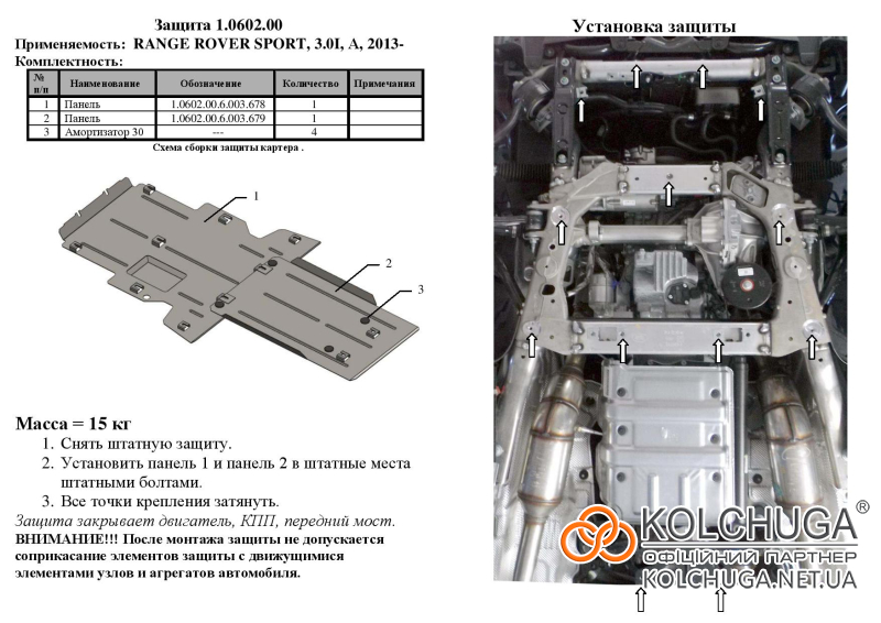 Kolchuga patrí medzi najspoľahlivejšie oceľové kryty podvozku na trhu. Vyrábané z vysokopevnostnej ocele, presne tvarované pre každý model auta a navrhnuté tak, aby chránili motor, prevodovku a ďalšie dôležité časti pri jazde v meste aj v teréne. Robustné, odolné a pripravené pre dlhé roky používania.
