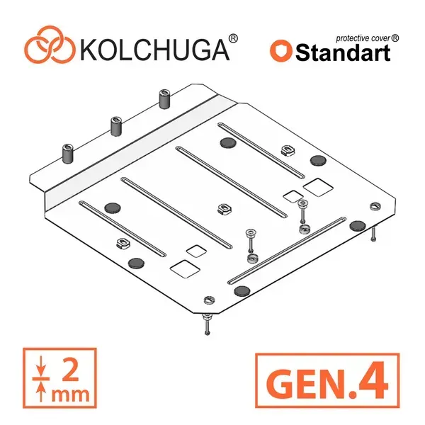 Kolchuga patrí medzi najspoľahlivejšie oceľové kryty podvozku na trhu. Vyrábané z vysokopevnostnej ocele, presne tvarované pre každý model auta a navrhnuté tak, aby chránili motor, prevodovku a ďalšie dôležité časti pri jazde v meste aj v teréne. Robustné, odolné a pripravené pre dlhé roky používania.