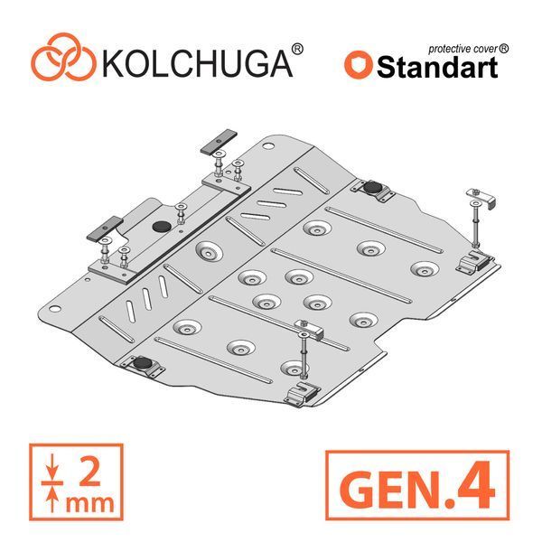 Kolchuga patrí medzi najspoľahlivejšie oceľové kryty podvozku na trhu. Vyrábané z vysokopevnostnej ocele, presne tvarované pre každý model auta a navrhnuté tak, aby chránili motor, prevodovku a ďalšie dôležité časti pri jazde v meste aj v teréne. Robustné, odolné a pripravené pre dlhé roky používania.