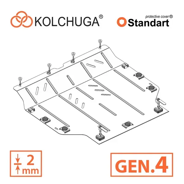Kolchuga patrí medzi najspoľahlivejšie oceľové kryty podvozku na trhu. Vyrábané z vysokopevnostnej ocele, presne tvarované pre každý model auta a navrhnuté tak, aby chránili motor, prevodovku a ďalšie dôležité časti pri jazde v meste aj v teréne. Robustné, odolné a pripravené pre dlhé roky používania.