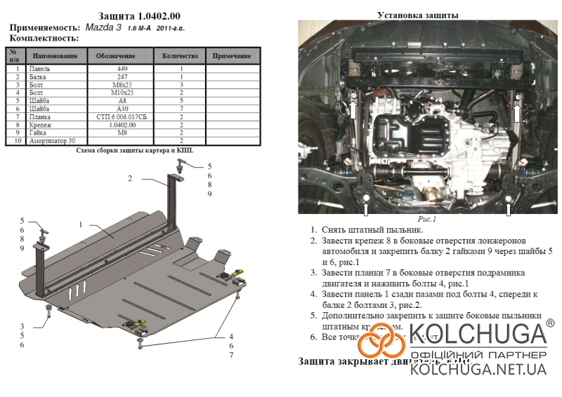 Ochrana motorového priestoru pre Mazda 3 BL II rok 2009-2013 sa vyrába pomocou moderných technológií z materiálov najvyššej kvality. Ako základ používame za studena valcovanú oceľ s hrúbkou 2 mm. Pomocou lisovania dávame ochrane jedinečný tvar pre každý automobil tak, aby sa montovala na originálne montážne body bez potreby dodatočného vŕtania alebo zvárania. Vďaka tomu je proces inštalácie maximálne jednoduchý. Všetky potrebné montážne prvky sú súčasťou balenia.