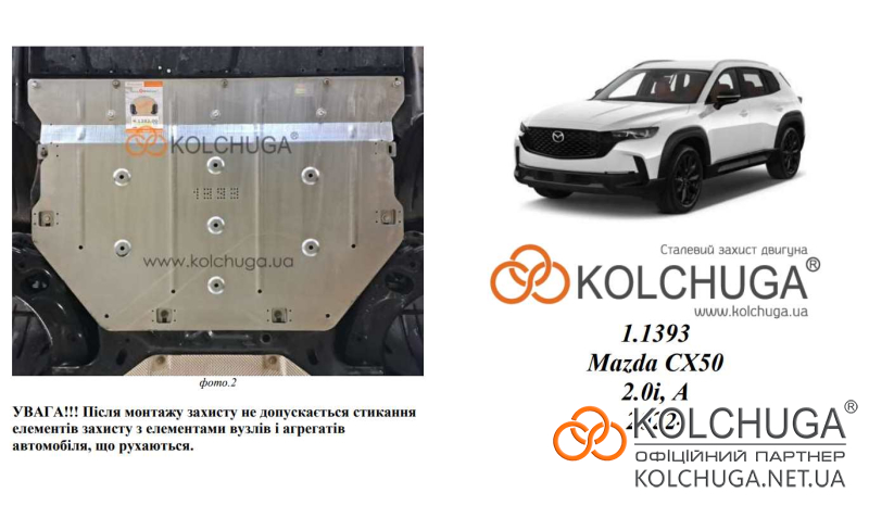 Ochrana motora Mazda CX-50 rok od 2022 nielenže chráni olejovú vaňu pred fyzickým nárazom, ale zároveň celý motorový priestor pred vniknutím vody, prachu a nečistôt. To výrazne predlžuje životnosť remeňov, kladiek a ďalších pohyblivých častí v motorovom priestore. Ochrany sa inštalujú namiesto plastových a ich plynulé tvary kopírujú tvar podvozku vozidla, čím zlepšujú aerodynamiku.