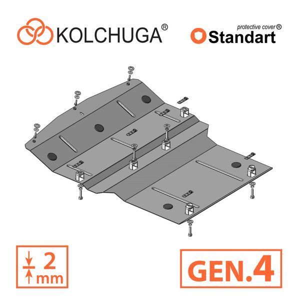 Kolchuga patrí medzi najspoľahlivejšie oceľové kryty podvozku na trhu. Vyrábané z vysokopevnostnej ocele, presne tvarované pre každý model auta a navrhnuté tak, aby chránili motor, prevodovku a ďalšie dôležité časti pri jazde v meste aj v teréne. Robustné, odolné a pripravené pre dlhé roky používania.