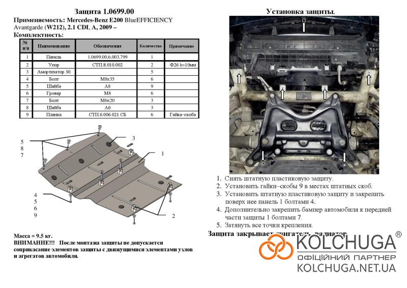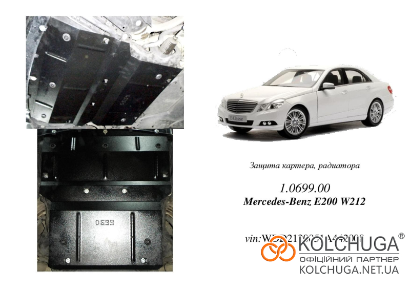 Ochrana motora Mercedes-Benz E-class W212 rok 2009-2016 nielenže chráni olejovú vaňu pred fyzickým nárazom, ale zároveň celý motorový priestor pred vniknutím vody, prachu a nečistôt. To výrazne predlžuje životnosť remeňov, kladiek a ďalších pohyblivých častí v motorovom priestore. Ochrany sa inštalujú namiesto plastových a ich plynulé tvary kopírujú tvar podvozku vozidla, čím zlepšujú aerodynamiku.